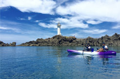 山形県鶴岡市の最南端、港町 鼠ヶ関の弁天島が望めるきれいな海でシーカヤックを簡単に操作して、ウミを自由自在に楽しめます。