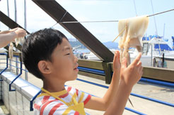 イカの漁法やイカの特徴、一夜干しにするメリットなど学びながら、実際にイカを割いて干してもらいます。一夜干ししたイカはお持ち帰り(配送可)できますので、食べ終わるまでが体験です。
