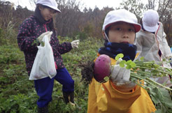 温海地域のシンボルともいえる焼畑あつみかぶの食文化を畑と作り手に触れながら体験します。作った「かぶら漬け」はお土産にどうぞ