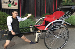 あつみ温泉街を巡る人力車に乗る体験イベントです。