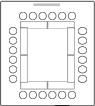 参加者全員が顔を見合わせつつ、適度な距離感で意見交換を行うことができるレイアウトです。意見を交換する会議等に適した形式です。